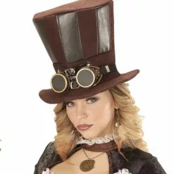 Sombrero Steampunk Negro Con Gafas Y Plumas Para Adulto