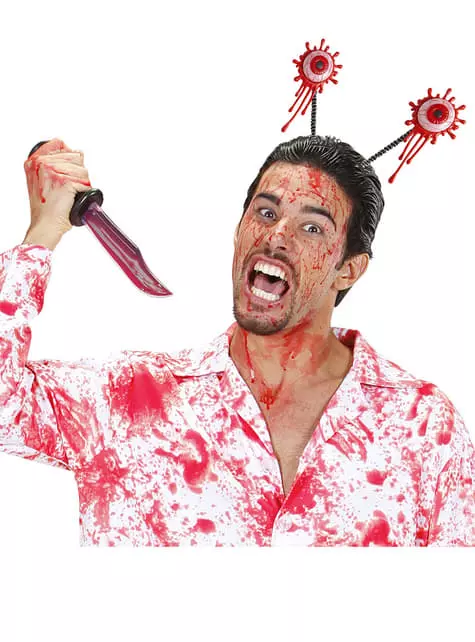 Incluye una diadema negra con dos ojos ensangrentados en forma de antenas.