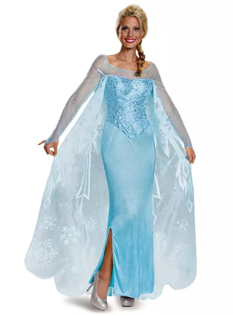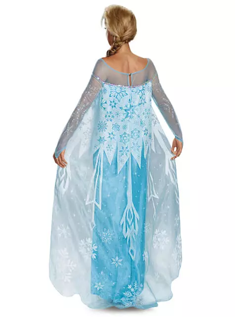 Elsa, la Reina de las Nieves es una de las protagonistas de la película de Disney Frozen que desde bien pequeña descubre que posee un poder sobre el hielo y la nieve que mantiene oculto a las personas. Comparte un estrecho vínculo con su hermana menor, sin embargo, después de un pequeño accidente, tiene que separarse de ella para protegerla de sus poderes. Durante la coronación real de Elsa, sus habilidades sobre el hielo son expuestas a los ciudadanos del Reino de Arendelle cuando Anna provoca que se enfade, haciendo que Elsa accidentalmente congele su reino, atrapándolo en un invierno eterno. A causa de este desastre, Elsa decide huir y esconderse en un Palacio de Hielo que ella misma fabrica, al igual que este precioso vestido de color azul hielo al ritmo de la conocida canción “let it go” (libre soy).