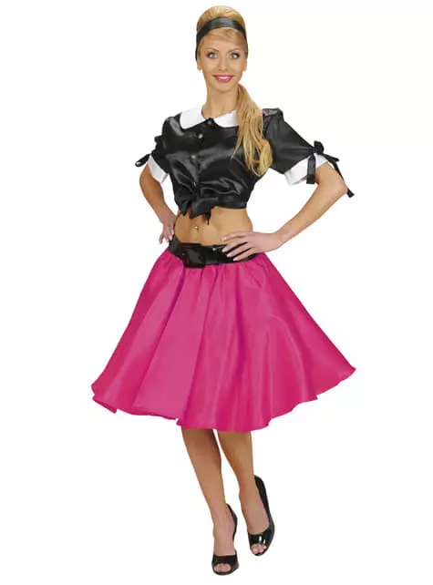 Incluye una hermosa falda de satén color rosa con un cinturón negro adjunto.