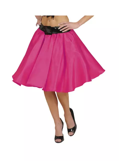 Te sentirás como la chica más sensual del lugar cuando lleves esta falda de satén rosa con enaguas para mujer.
