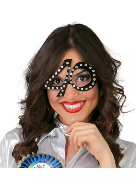 Incluye unas gafas con el número 40 en grande, de color negro y con apliques brillantes.