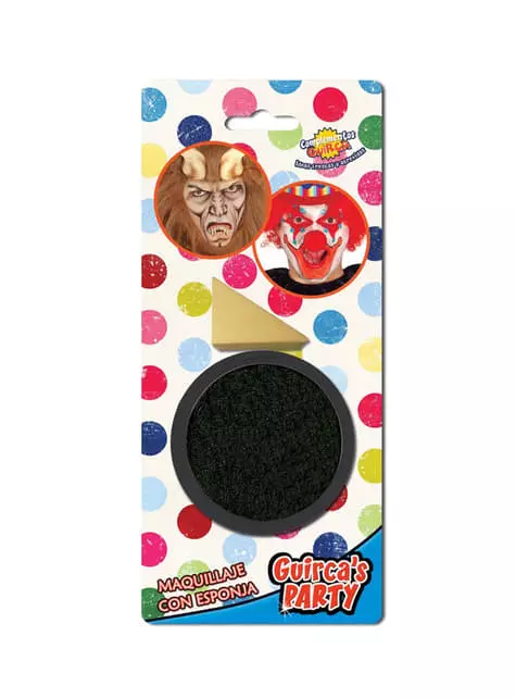 Incluye un envase de maquillaje color negro y una esponja para aplicarlo.