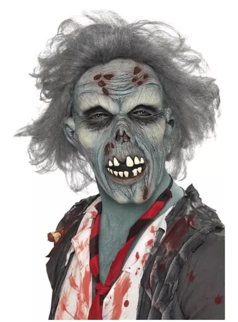 Incluye una máscara de zombie en descomposición con pelo canoso.