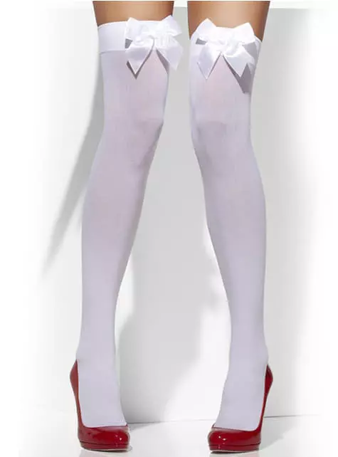 Completa tu disfraz y dale un toque de color con estas medias blancas con lazos blancos.