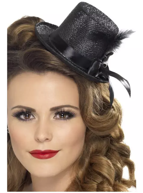Embellece tu cabeza con esta mini chistera negra.