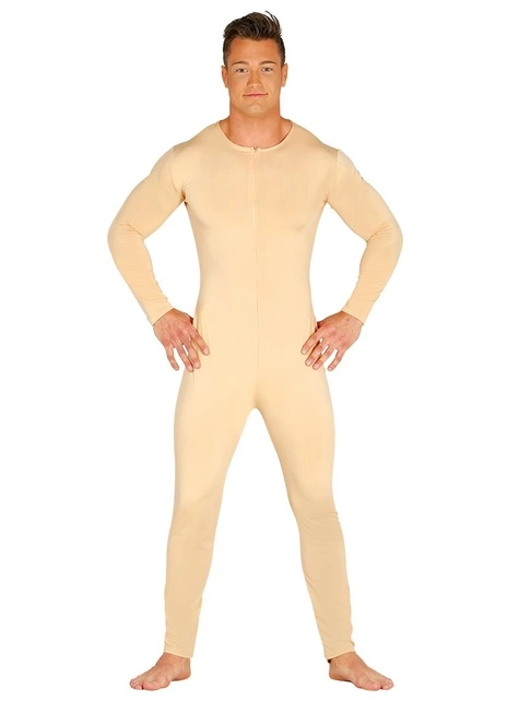Combina tu disfraz favorito con este mono color piel para hombre.
