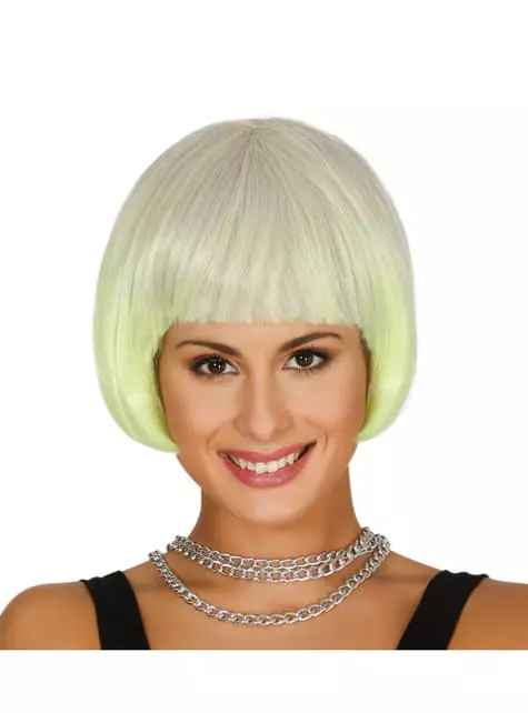 Incluye una atractiva peluca corta y lisa color amarillo.