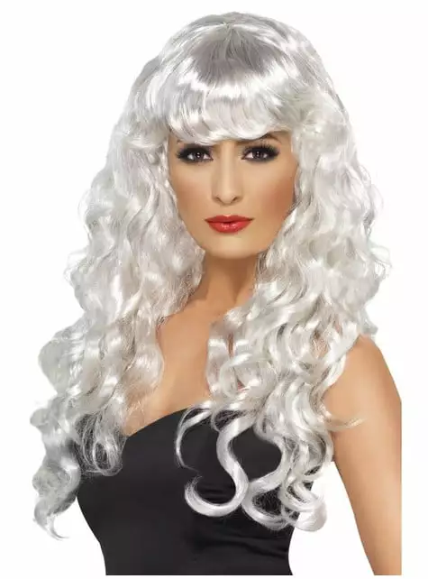 Ahora querrás ver tu melena al viento con esta peluca blanca de sirena con flequillo.