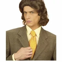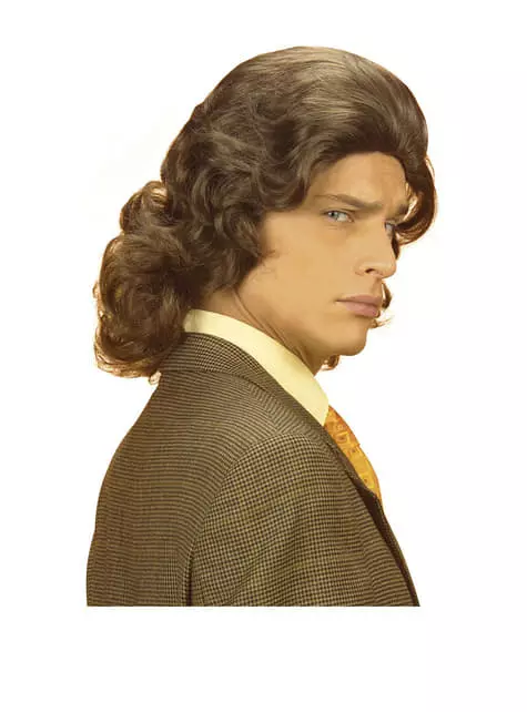 Retrocede en la vida y vuelve a los mejores años con esta peluca de hombre años 70 castaña.