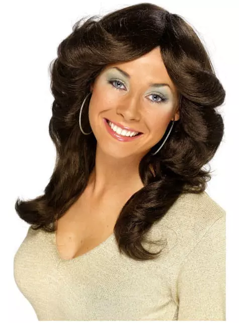 Estarás elegantísima con esta peluca de película de los 70 marrón.