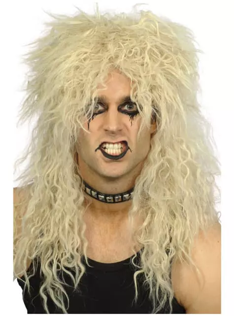 Incluye una peluca estilo larga y ondulada color rubio estilo rockero.