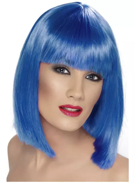 Incluye una peluca corta azul con flequillo.