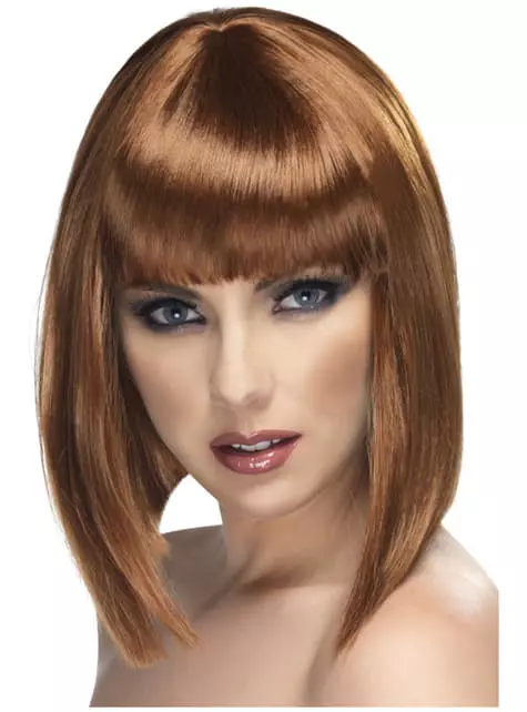 Incluye una peluca de media melena despuntada con flequillo de color marrón.