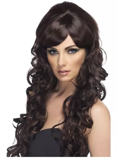 Conviértete en una superestrella con esta peluca de aspirante a estrella del pop marrón.
