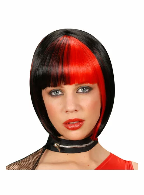 Que tus amigos se sorprendan con esta peluca negra con mechas rojos estilo Zoey para mujer.