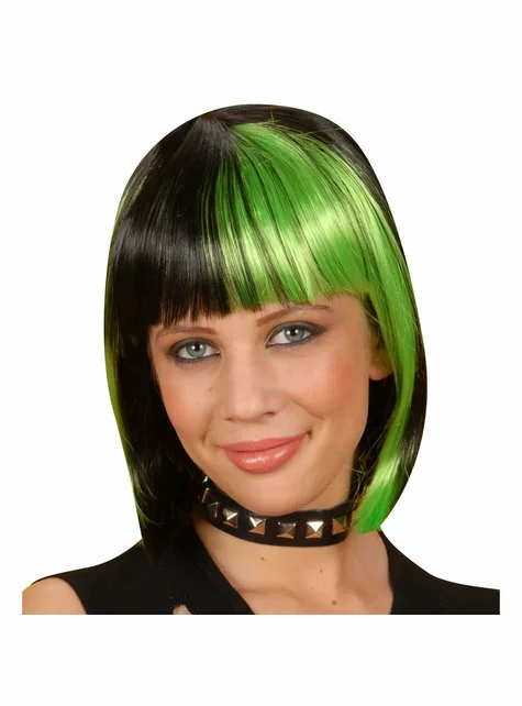 Que tus amigos se sorprendan con esta peluca negra con mechas verdes estilo Zoey para mujer.