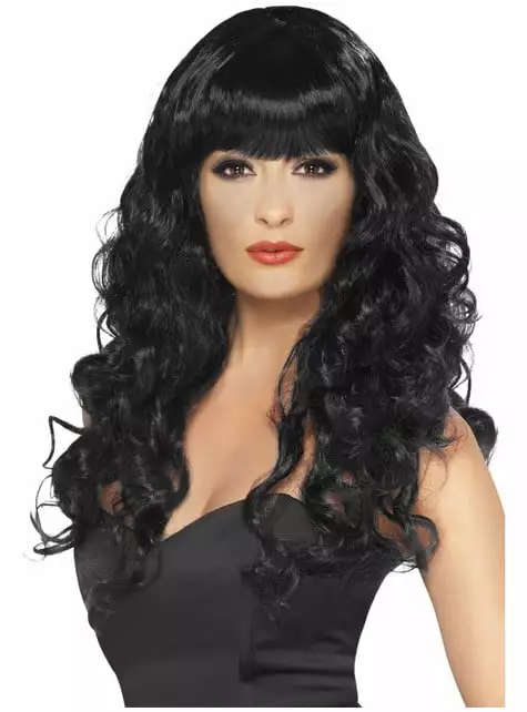 Ahora querrás ver tu melena al viento con esta peluca negra de sirena con flequillo.
