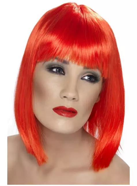 Acumula admiradores con esta peluca glamurosa rojo neón con flequillo.