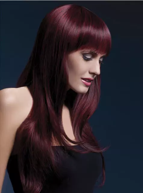 Incluye una peluca larga con capas, 66 cm. con flequillo recto de color negro.