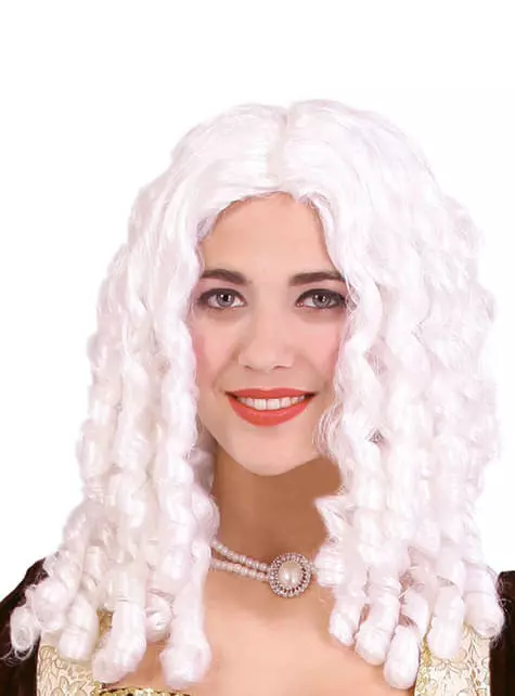 Parecerás una reina con esta peluca tirabuzones blancos.