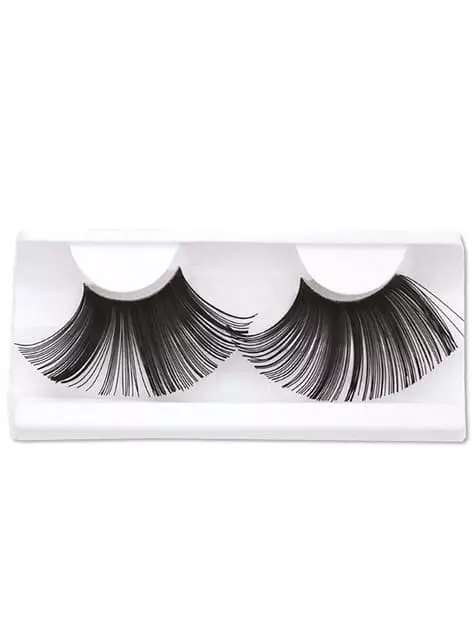 Incluye unas pestañas postizas negras, largas y tupidas con pegamento para ponerlas.