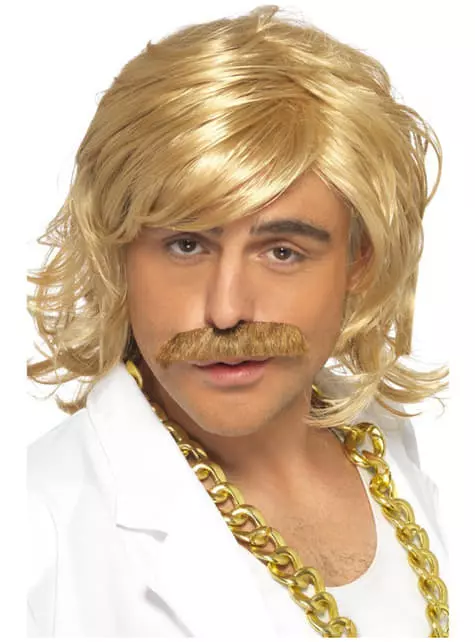 ¿Glamuroso? ¿Hortera? Lo dejamos a tu elección con este set de peluca y bigote rubio para hombre.