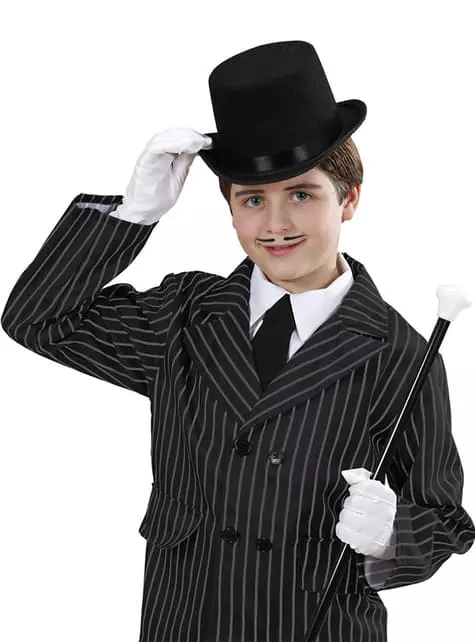 Incluye un clásico sombrero de copa de color negro, con una cinta negra.